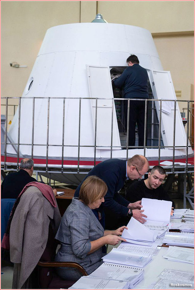 At the end of 2024, Roskosmos released first images of the of the integrated pilot simulator, KT PTK, for the PTK Orel spacecraft undergoing acceptance tests (INSIDER CONTENT) at the Gagarin Cosmonaut Training Center, TsPK, in Star City. The facility, known as RMO (from the Russian Rabochee Mesto Operatora), was designed to train cosmonauts to perform critical operations in orbit, such as attitude control, orbit corrections and rendezvous with other vehicles using equivalents of the ship's controls.