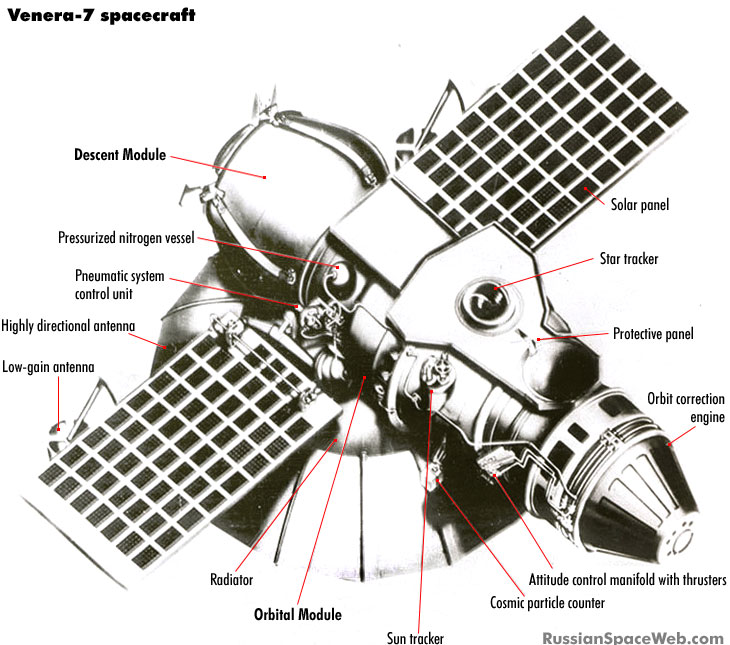 Fabrication of the shell for the V-70 descent module. The extra protection came with a price -- the vehicles' mass exceeded the capabilities of their launchers by some 20 kilograms. In a frantic search to save weight, engineers decided to remove telemetry systems from the upper stage of the launch vehicles that would push each probe from initial Earth orbit on its way to Venus. "This way, we barely fit into the weight requirements," said Vladimir Perminov, deputy chief designer for deep-space spacecraft at Lavochkin bureau at the time. Each egg-shaped lander would then carry communication equipment and a multitude of sensors which would measure around two dozen factors during its descent, including external and internal temperature of the spacecraft, the pressure and the composition of atmospheric gases, etc. Each capsule was also equipped with a parachute, which would be deployed after the craft had completed its initial aerodynamic descent. The parachute was reduced in size, compared to the previous probes, in order to accelerate the landing. The Venera-7 mission